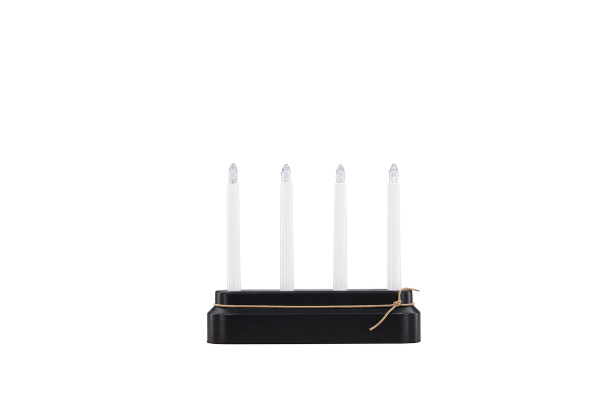 Vastuullinen ja fiksu kynttilänjalka mustasta puusta - Näsfjället vie sisustuksesi uudelle tasolle tänä talvena! Tämä klassisen adventtikynttilänjalan muotoinen pöytävalaisin on ehdoton valinta niille, jotka haluavat kotiinsa ainutlaatuisen ja modernin valaistuksen. Tämä kynttilänjalka tarjoaa älykkään ratkaisun ja on täydellinen vaihtoehto perinteisille kynttilöille. Tyylikkään mustan, männystä valmistetun pohjan ja neljän valkoisen LED-valon, jotka jäljittelevät klassisia kynttilänliekkejä, ansiosta tästä tulee älykäs ratkaisu kotiisi. Se tarjoaa hienostuneen tunnelman ja luo miellyttävän valaistuksen, joka sopii kaikkiin tilaisuuksiin - ei vain joulujuhliin. Vaihda perinteinen adventtikynttilänjalka Näsfjälletiin ja koe kestävämmän ja turvallisemman ratkaisun edut. Älykkään muotoilunsa ansiosta tämä kynttilänjalka on energiatehokas ja pitkäikäinen, joten se on ympäristöystävällinen valinta sinulle ja perheellesi. Se ei ainoastaan luo kodikasta tunnelmaa kotiisi, vaan antaa myös turvallisuuden tunteen. Sinun ei enää tarvitse huolehtia avotulesta; sitä on turvallista käyttää sekä päivällä että yöllä! Mitat: 25x25x7cm.