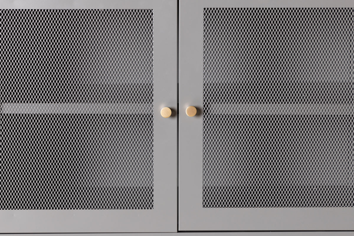 Malla - moderni kaappi kovassa teollisessa muotoilussa, jossa on herkulliset verkko-ovet ja harmaasta jauhemaalatusta teräksestä valmistetut luut, joissa on 2 älykästä hyllyä helpotusta varten. Kaappia nostavat kapeat, korkeat jalat, jotka luovat ilmavan tunnelman ja helpottavat myös pölynimurin käyttöä. Täydellinen säilytyskaluste kaikelle haluamallesi - täytä posliinilla, kirjoilla tai kauniilla koristeilla. Joustavan kokonsa ja tyylikkään ulkomuotonsa ansiosta kaappi on helppo sijoittaa ja se sopii hyvin kodin useimpiin huoneisiin, joten kalusta se omien tarpeidesi ja toiveidesi mukaan!