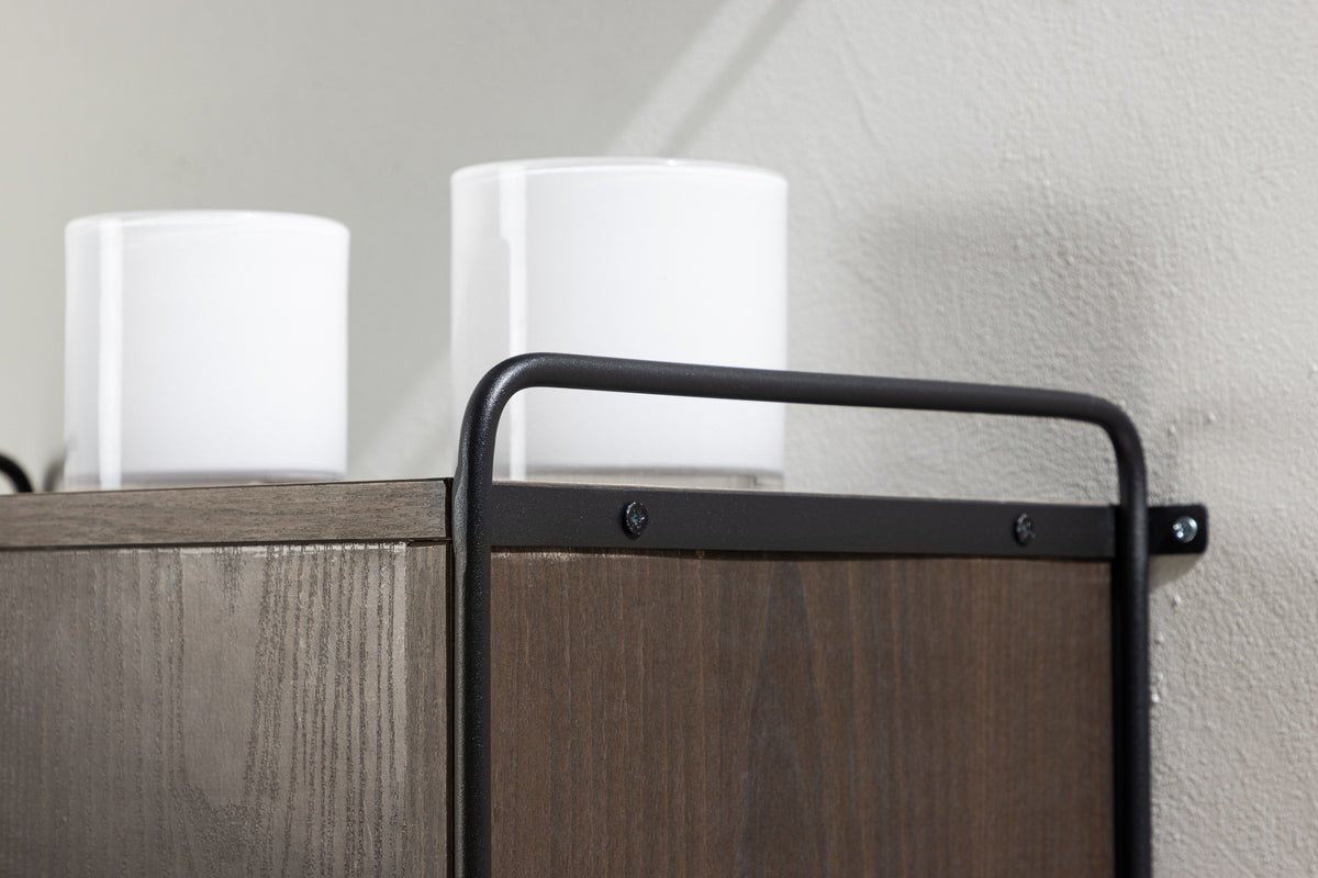 Koristele kotisi viihtyisästi ja näppärästi Paris-sarjan trendikkään, tummanruskeasta puusta valmistetun seinähyllyn avulla! Tässä seinähyllyssä on ohut musta teräsrunko, ja se tukee tyylikästä kaappia, jossa on kaksi tyylikästä ovea tummanruskeasta MDF-levystä. Koe hyödyt, kun säilytät tavaroitasi huomaamattomasti ja lisäät samalla modernin säväyksen seinällesi. Kahden puisen oven takaa löydät kaksi näppärää hyllyä, jotka tarjoavat runsaasti tilaa järjestää tavarasi fiksusti. Näin tässä seinähyllyssä yhdistyvät toiminnallisuus ja estetiikka parhaalla mahdollisella tavalla. Lisäksi se sopii hyvin mihin tahansa huoneeseen - olohuoneesta makuuhuoneeseen tai toimistoon. Tuo elämää seinillesi ja anna niiden heijastaa henkilökohtaista tyyliäsi! Tätä seinähyllyä on saatavana myös valkoiseksi kalkittuna, ja sitä on saatavana kahdessa eri koossa, jotta se sopii parhaiten mieltymyksiisi ja tarpeisiisi!