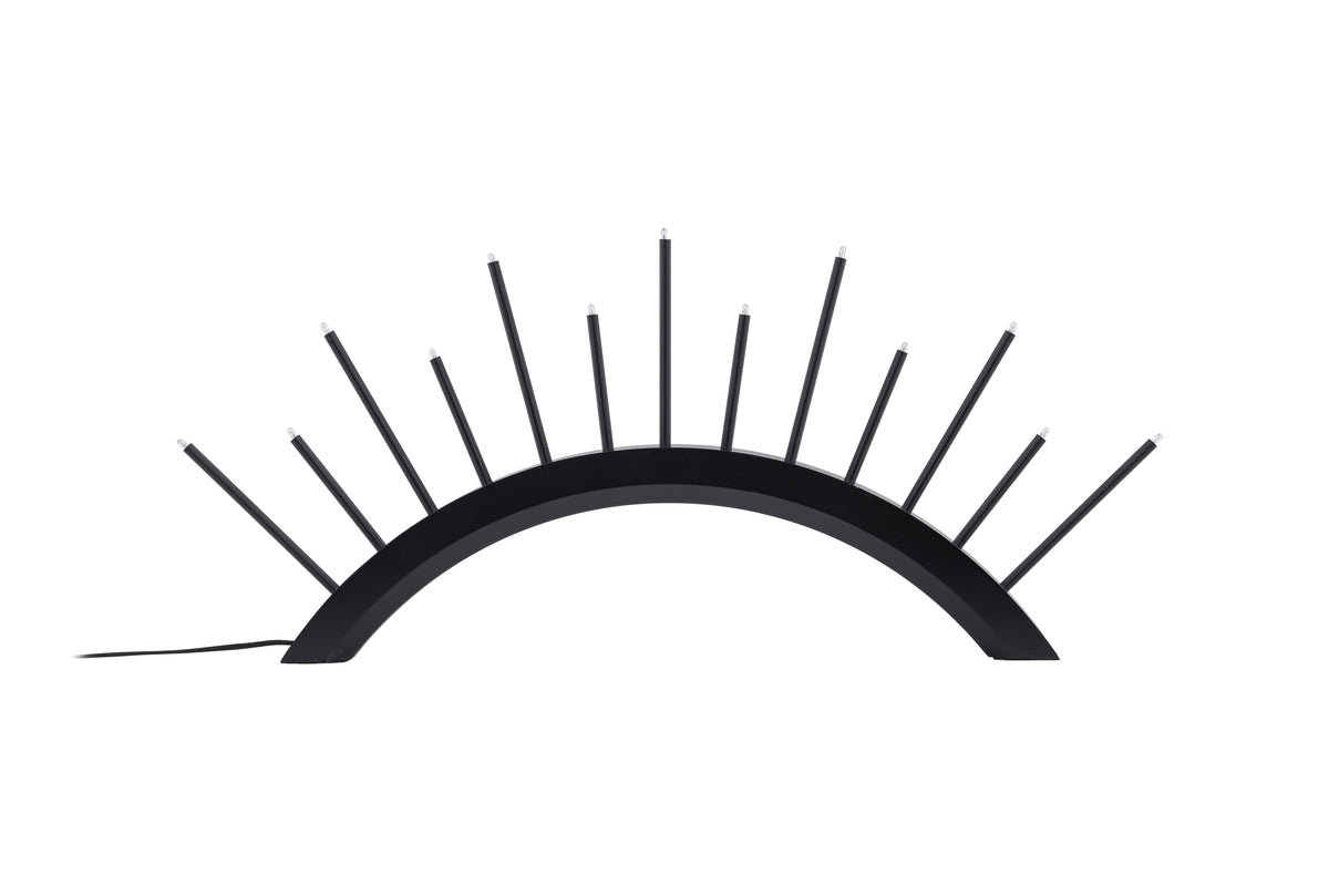 Kokeile, kuinka Kettilsås-pöytävalaisimen lämmin valaistus syleilee kotiasi ja luo kodikkaan tunnelman talvikuukausina. Tämä kaareva, musta adventtikynttilänjalka on puoliympyrän muotoinen ja valmistettu kestävästä MDF-levystä tyylikkään mustalla värillä. Kettilsås levittää kolmellatoista pienellä valollaan, jotka on sijoitettu eri korkeuksille tyylikkään mustan kehyksen varrelle, miellyttävää hehkua, joka syventää kodikkuuden ja lämmön tunnetta. Sen moderni ja tyylikäs muotoilu tekee siitä täydellisen lisän kotiisi, ja siitä tulee varmasti keskustelunaihe adventtikaudella. Kettilsås adventtikynttilänjalka ei ole vain kaunis katsella, vaan tarjoaa myös käytännön hyötyjä. Sinun ei enää tarvitse huolehtia siitä, että tulipalo tai vahan roiskeet pilaavat rauhallisen hetken. Kettilsåsin avulla saat turvallisen ja huoltovapaan vaihtoehdon, joka luo saman perinteisen tunnelman ilman huolia. Aseta se ikkunalaudoille ja levitä valoa huoneeseen ja kadulle! Mitat: 30x55x6cm.