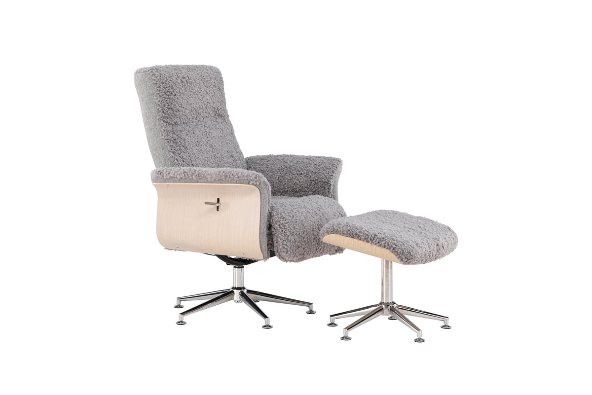 Hagön nojatuoli on ajaton investointi kotiisi! Huolellisen suunnittelun ja harkittujen yksityiskohtien ansiosta tämä nojatuoli edustaa pohjoismaisen muotoilun mestariteosta. Pehmeällä, turkista muistuttavalla harmaalla kankaalla päällystetty Hagön tarjoaa ylellisyyden ja hyvinvoinnin tunteen heti ensimmäisestä hetkestä lähtien. Valkovärinen puurunko edistää ilmavaa ja modernia estetiikkaa, joka sulautuu saumattomasti mihin tahansa sisustukseen. Tyylikkäät kromijalat tuovat muotoiluun hienovaraista kiiltoa. Mukavasti pyöristetyt ja rentoutumiseen suunnitellut käsinojat ja niihin kuuluva jalkatuki antavat lisätukea ja mukavuutta väsyneille jaloille. Lisäksi selkänoja on säädettävissä mukavuuden maksimoimiseksi. Halusitpa sitten nauttia kirjasta tai seurustella ystävien kanssa, Hagön on siihen täydellinen paikka!