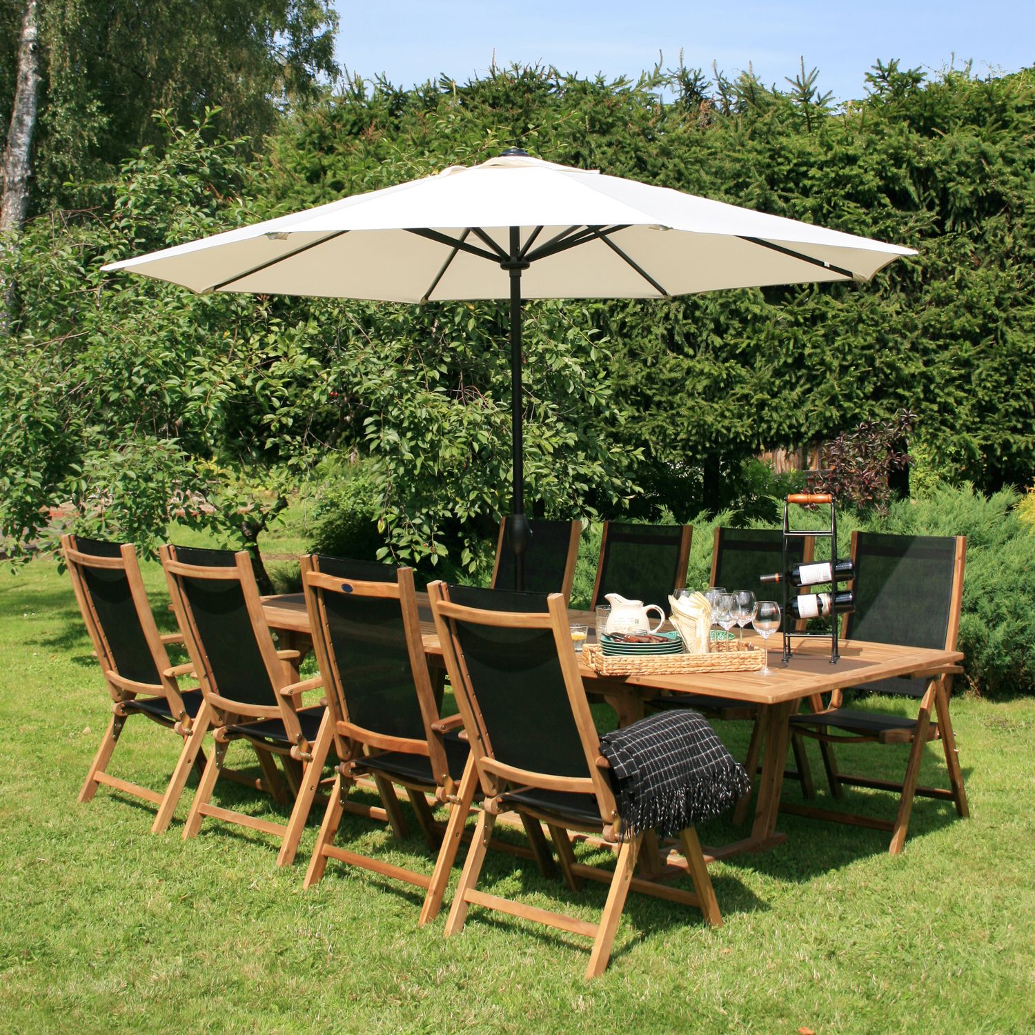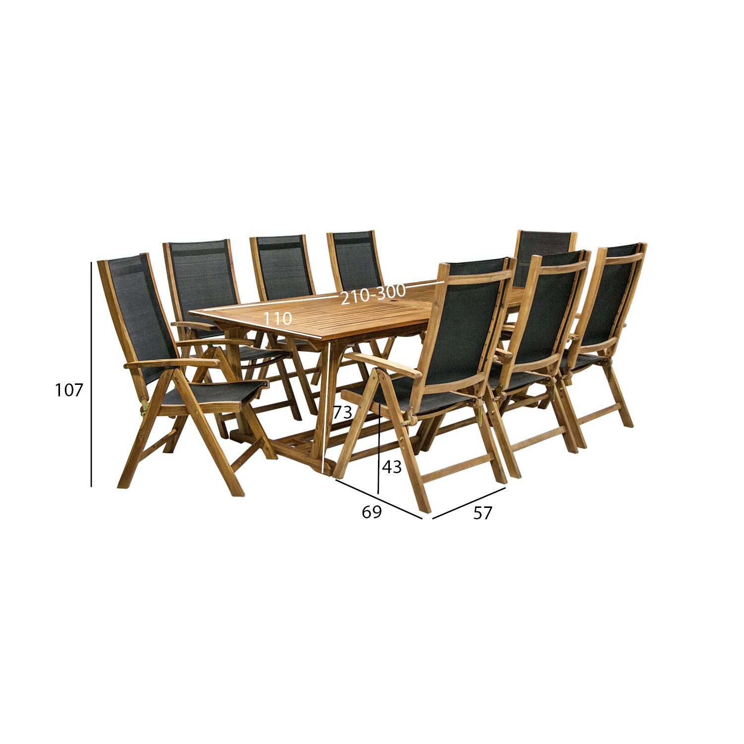 The Future terrace table is made of oiled acacia wood and can be extended to a length of up to 3 meters, the extension pieces can be conveniently hidden under the table when they are not needed. 8 chairs can easily fit around the table, and if necessary, additional seats can be found at the ends of the table. The backrest of the stylish Future chair can be locked in 7 different positions by lifting the armrests of the chair. Here's a stylish ensemble for even a larger group.