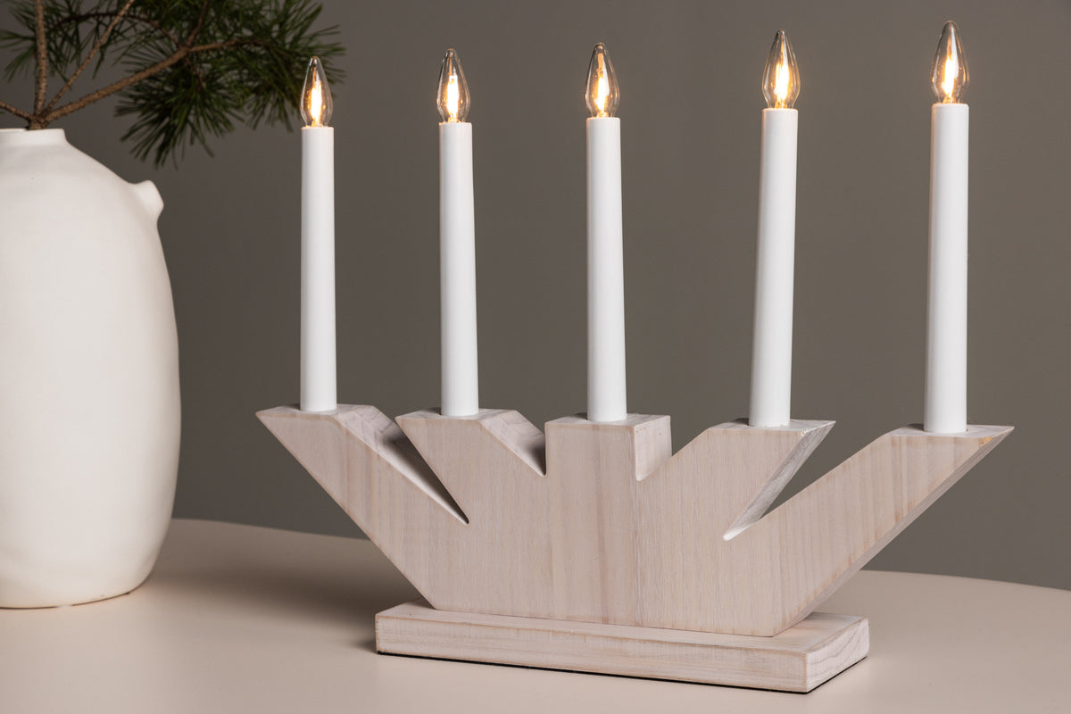 Anna kotiisi ripaus luonnollista eleganssia Verbierin adventtikynttilänjalalla. Tämä kaunis adventtikynttilänjalka on valmistettu valkoiseksi kalkitusta männystä ja tarjoaa tyylikkään tulkinnan perinteisestä adventtikoristeesta. Viiden mukana tulevan lampun ansiosta se levittää pehmeää ja kutsuvaa hehkua ja luo joulun odotuksen tunnelmaa. Valkoiseksi pesty mänty antaa sisustukseen hienovaraista ja luonnollista tunnelmaa, mikä edistää rauhoittavaa tunnelmaa kodissasi. Aseta se ruokapöydälle, hyllylle tai joulukoristeen keskeiseksi osaksi, jotta se valaisee kotiasi koko joulun ajan. Verbierin adventtikynttilänjalan avulla voit luoda ikimuistoisia hetkiä ja nauttia jouluperinteistä yksinkertaisella ja luonnollisella otteella. Anna sen olla olennainen osa jouluasi ja luo pysyviä muistoja tuleviksi vuosiksi.
