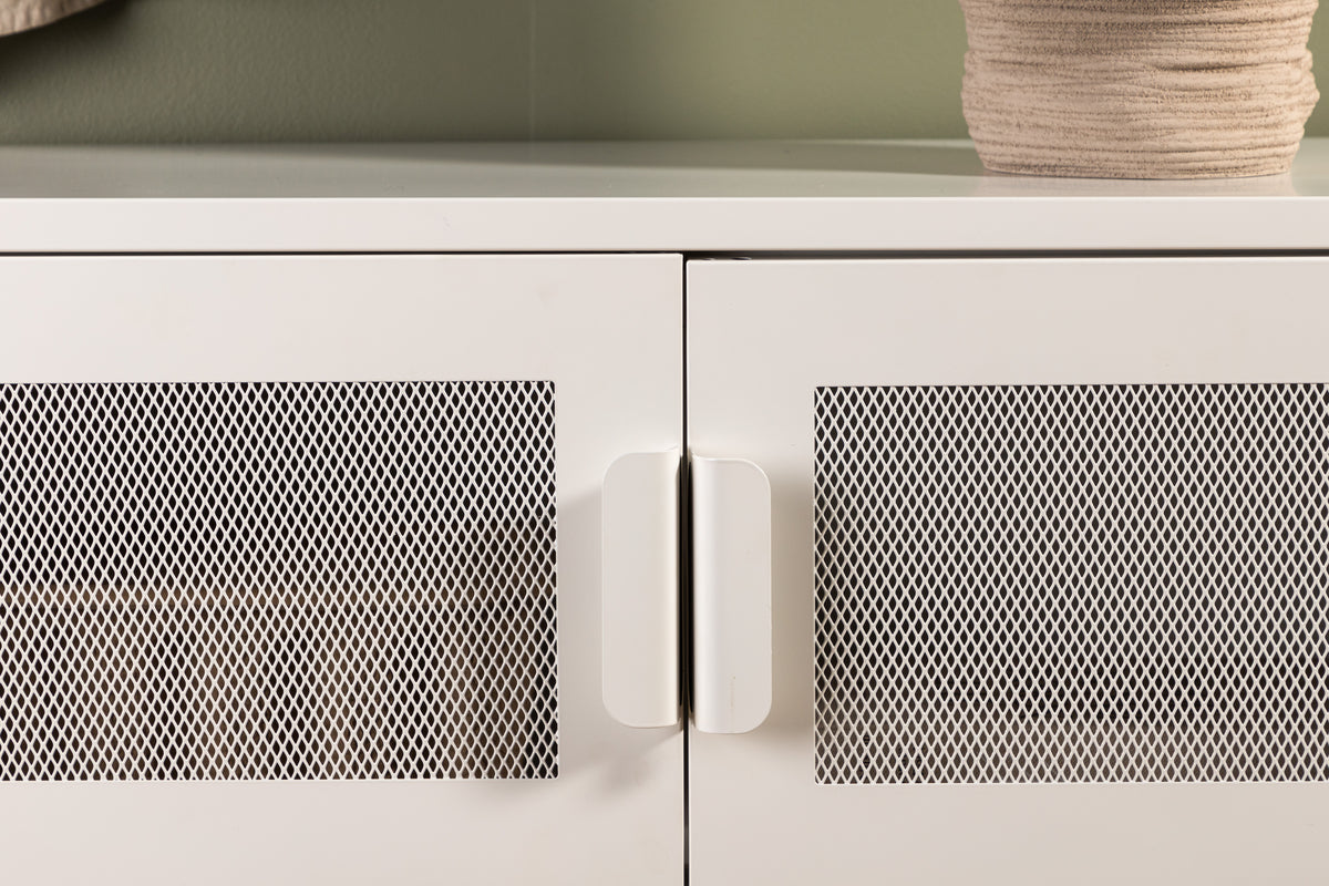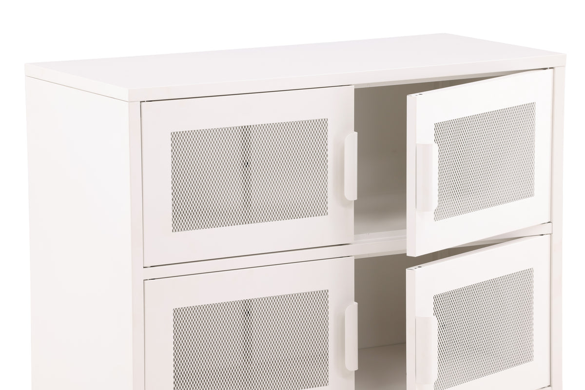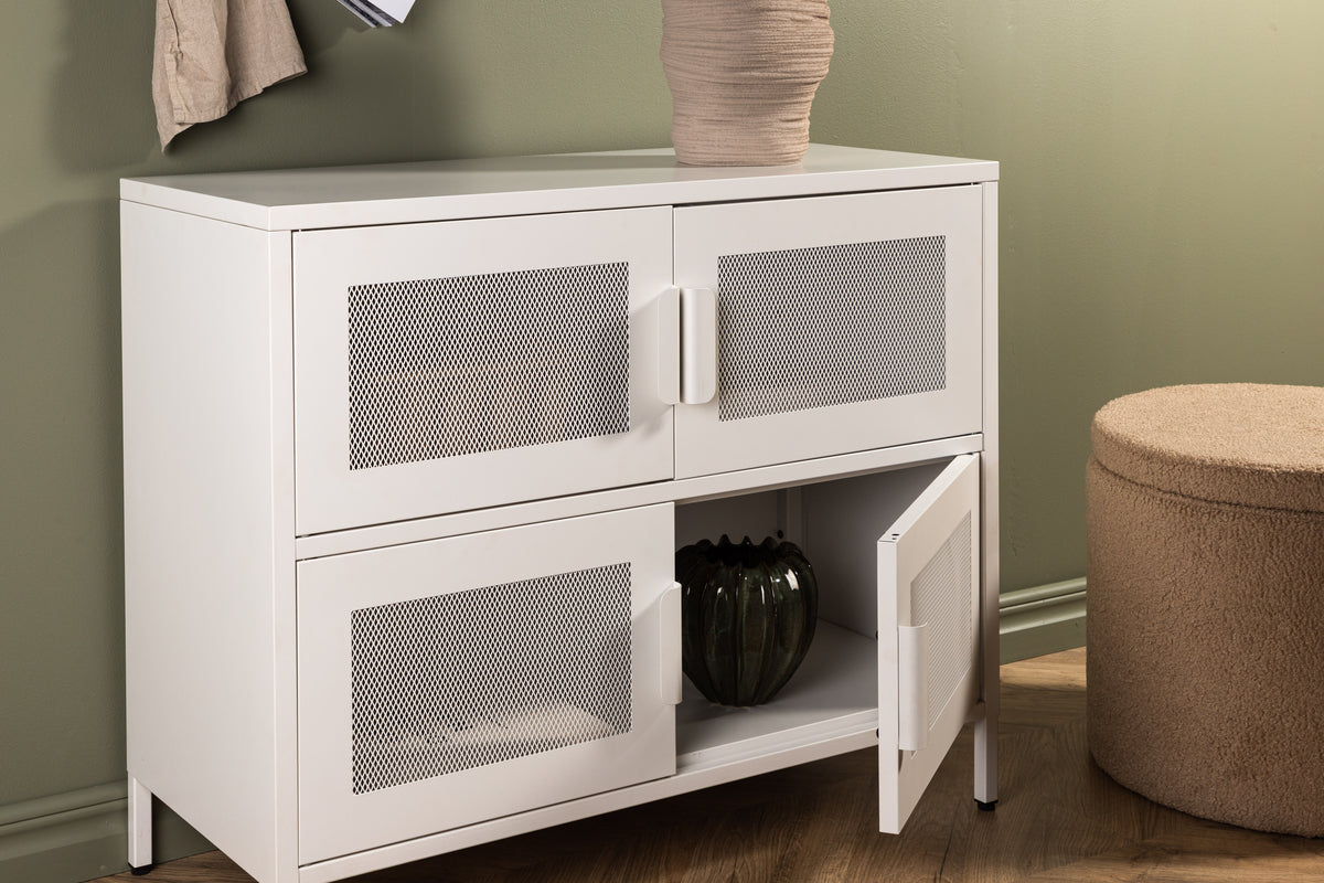 Rahoita koti älykkääksi ja siistiksi Net-sarjan käytännöllisellä säilytyskaapilla herkullisella teolliseen muotoiluun! Tämä kaappi on valmistettu valkoisesta teräksestä ja siinä on verkkoluukkuja, joista tulee silmää miellyttävä ja tyylikäs yksityiskohta. Kaapissa on kaksi hyllyä, joissa on neljä aukkoa, jotka luovat paljon tilaa puolivillaiseen säilytykseen. Kaapin syvyys antaa jykevän vaikutelman ja sopii erinomaisesti reliefiksi myös ylälevylle - koristele koristeilla ja luo katseenvangitsijan, joka tekee vaikutuksen! Kapeat, korkeat jalat, jotka nostavat kaappia ylöspäin, luovat ilmavan tunteen ja helpottavat myös pölynimurin käyttöä. Nauti fiksusta kalusteesta!