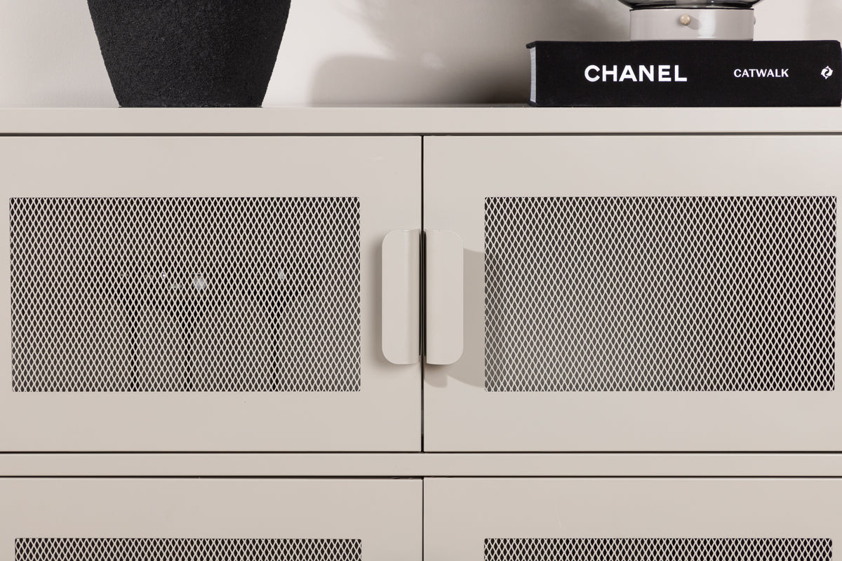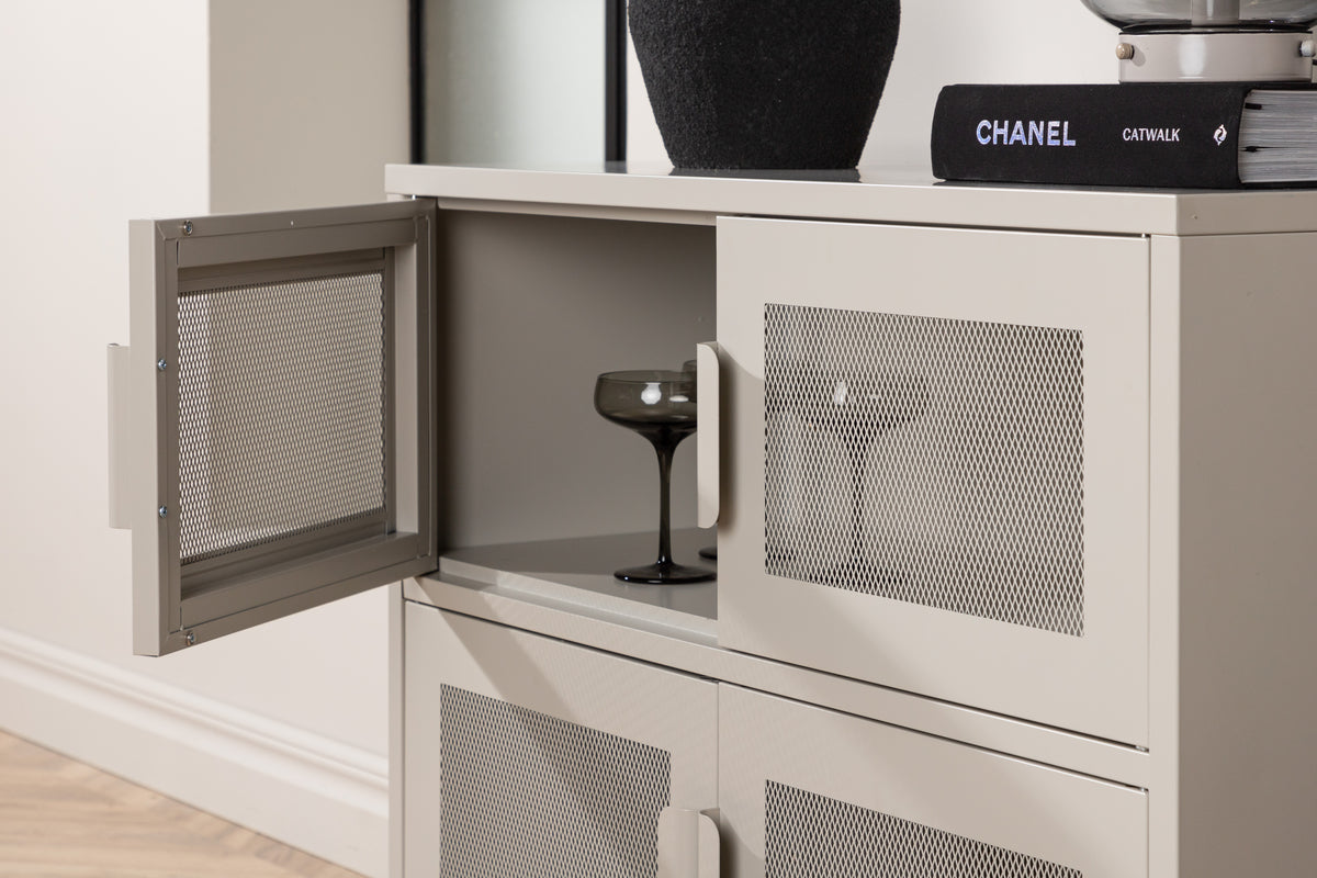 Rahoita koti älykkääksi ja siistiksi Net-sarjan käytännöllisellä säilytyskaapilla herkullisella teolliseen muotoiluun! Tämä kaappi on valmistettu beigestä teräksestä ja siinä on verkkoluukkuja, joista tulee silmää miellyttävä ja tyylikäs yksityiskohta. Kaapissa on kaksi hyllyä, joissa on neljä aukkoa, jotka luovat paljon tilaa puolivillaiseen säilytykseen. Kaapin syvyys antaa jämäkän vaikutelman ja sopii erinomaisesti reliefiksi myös ylälevylle - koristele koristeilla ja luo katseenvangitsijan, joka tekee vaikutuksen! Kapeat, korkeat jalat, jotka nostavat kaappia ylöspäin, luovat ilmavan tunteen ja helpottavat myös pölynimurin käyttöä. Nauti fiksusta kalusteesta!