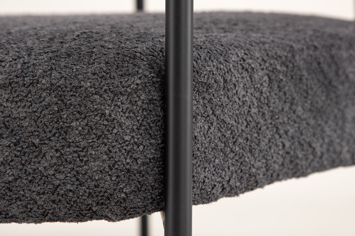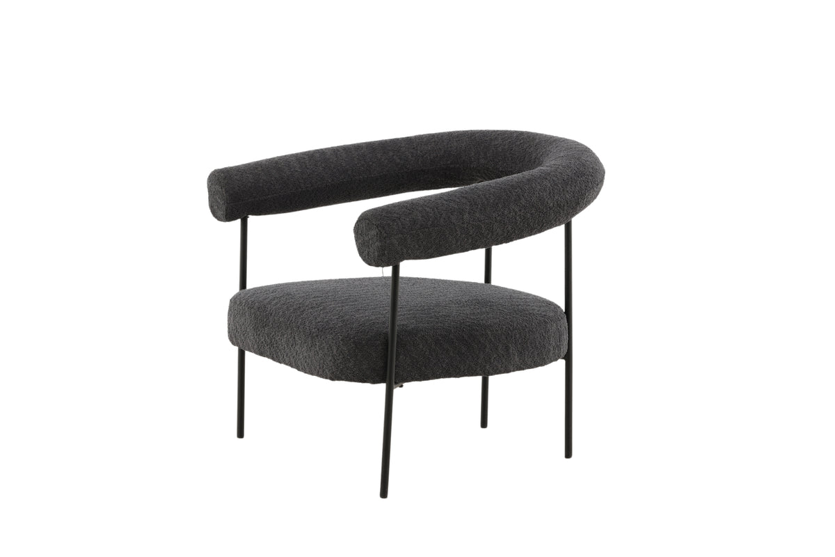 Nosta sisustus uudelle tasolle Josefin Lustigin malliston Hökåsen-nojatuolilla. Kutsuvilla pohjoismaisilla muodoilla tämä nojatuoli luo kutsuvan ja ylellisen vaikutelman. Nojatuoli on puolikuun muotoinen, ja siinä on mukava ja tilava istuinosa, joka on puettu trendikkääseen harmaaseen boulenekankaaseen. Runkorakenne on minimalistinen mustasta teräksestä, ja yksinkertainen muotoilu antaa ilmavan tunnelman. Tummanharmaa