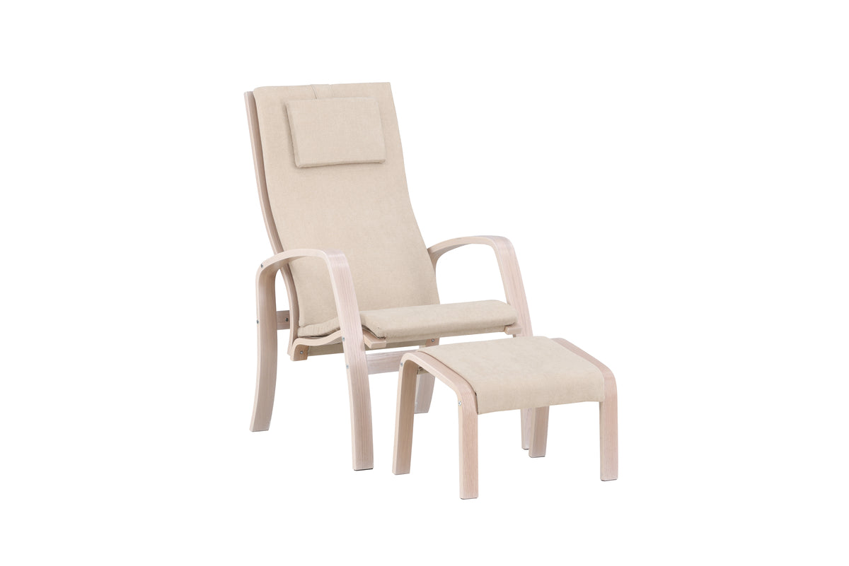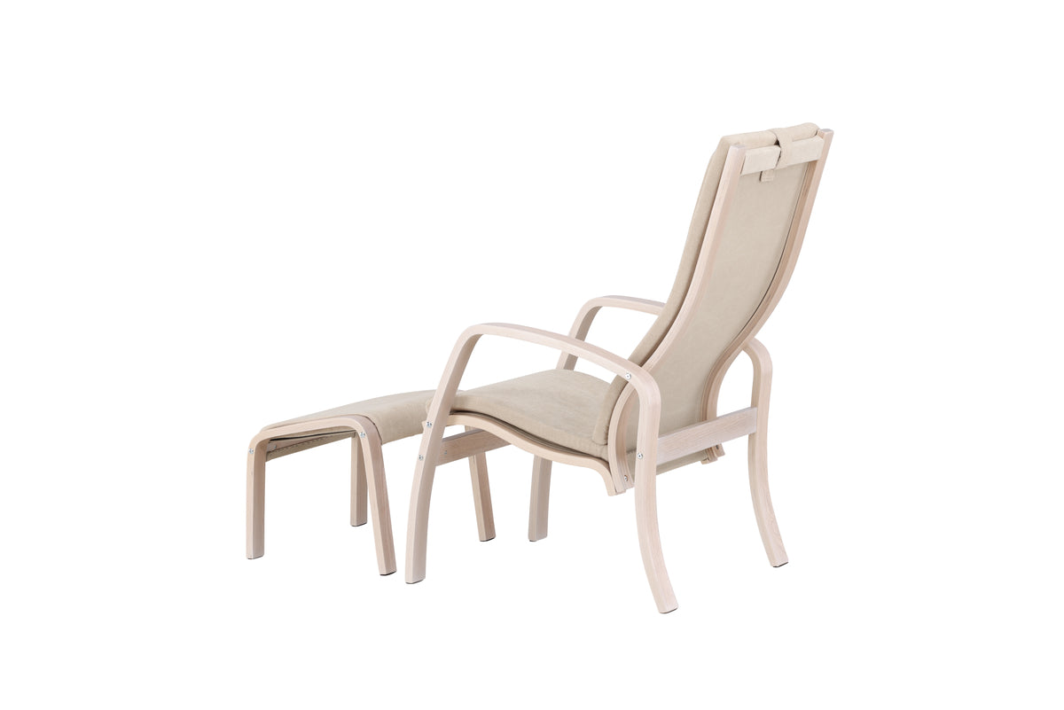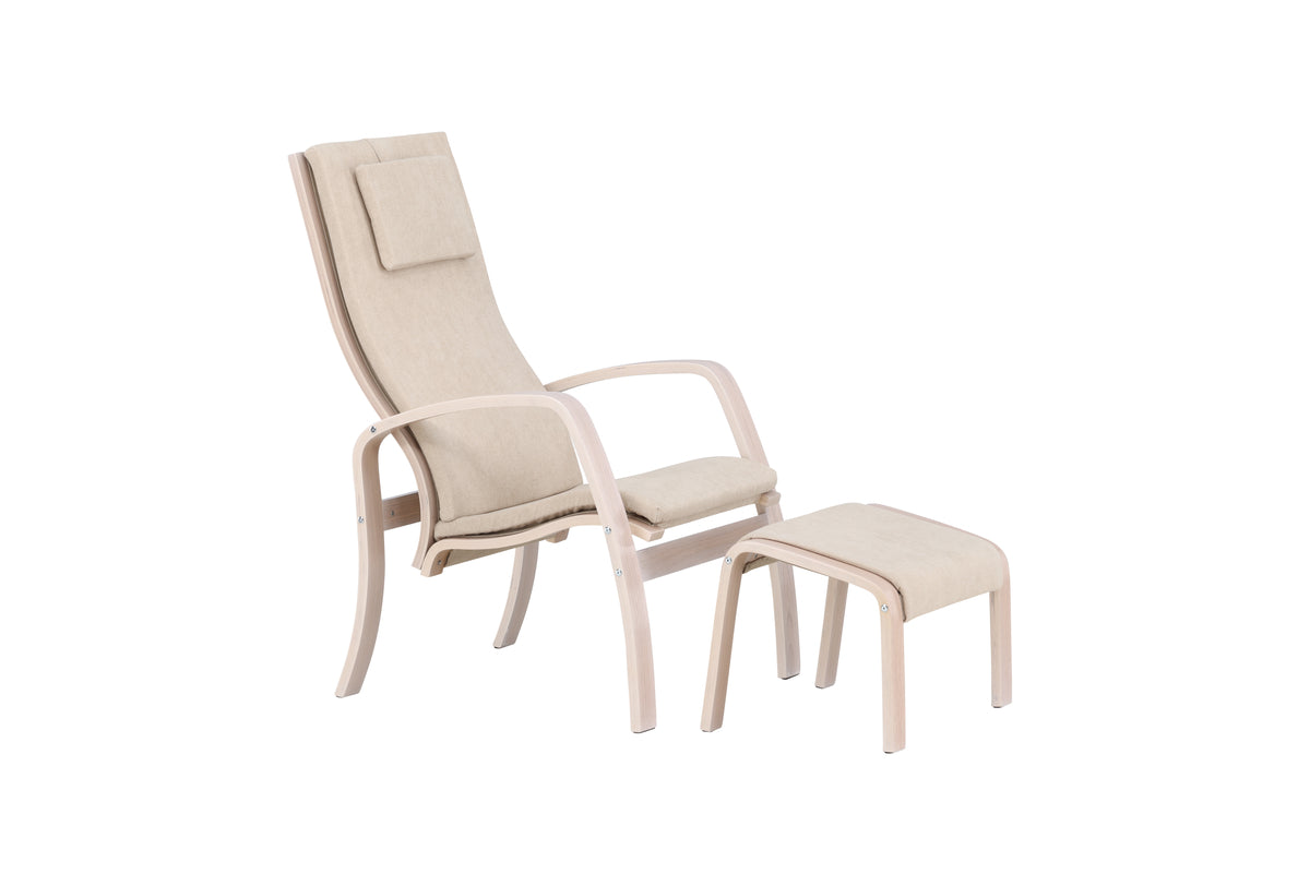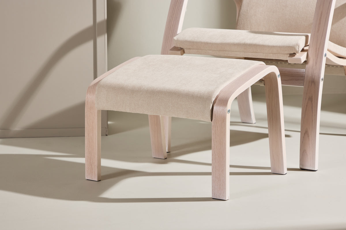 Nojaa taaksepäin ja rentoudu pitkän päivän jälkeen Grötö-nojatuolissa ja siihen sopivassa ottomaanissa! Sen valkopesty vanerirunko yhdistettynä vaaleanharmaaseen polyesteriverhoiluun luo tyylikkään ja luonnollisen tunnelman, joka sulautuu saumattomasti mihin tahansa huoneeseen. Kaarevien muotojensa ja huolellisesti valmistettujen yksityiskohtiensa ansiosta Grötö on sekä toimiva että tyylikäs. Tyynyjen selkeät linjat luovat osaltaan modernin tunnelman ja täydentävät nojatuolin siroa muotoilua. Koe materiaalien, värien ja muotojen harmoninen yhdistelmä ja luo kotiisi kutsuva keidas Grötö-nojatuolin ja ottomaanin avulla.