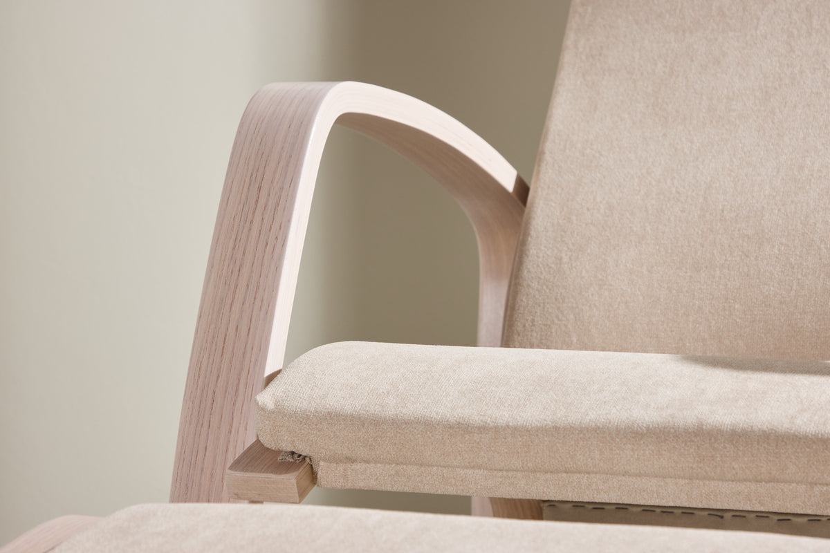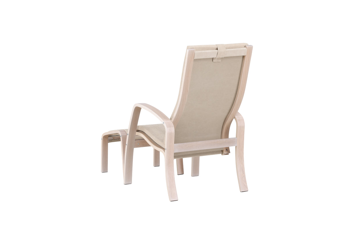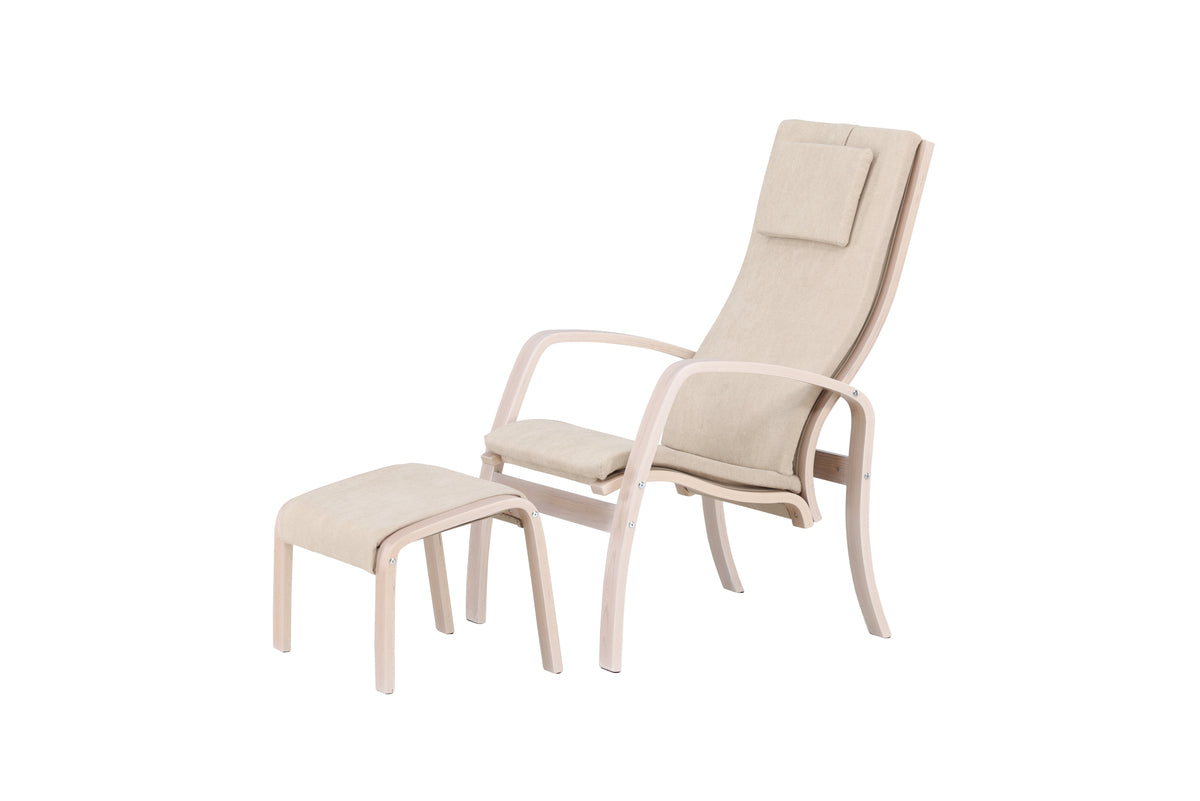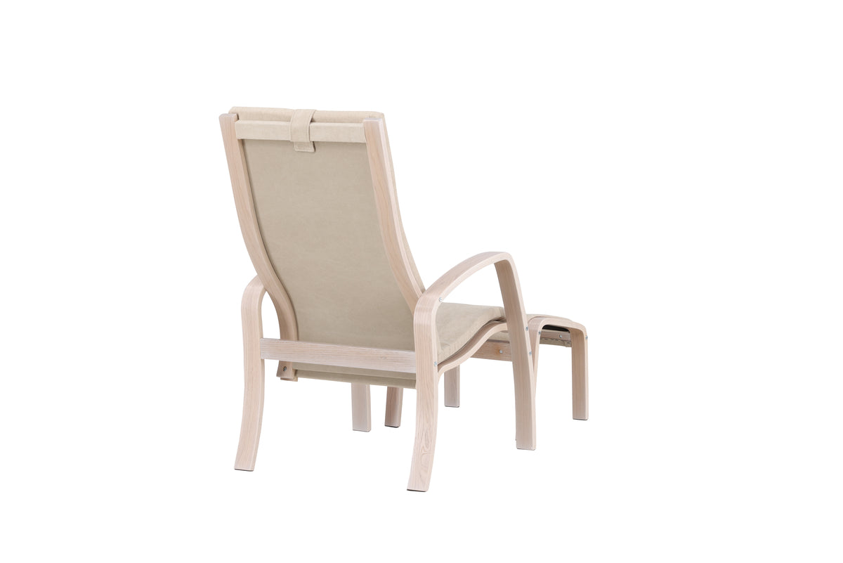 Nojaa taaksepäin ja rentoudu pitkän päivän jälkeen Grötö-nojatuolissa ja siihen sopivassa ottomaanissa! Sen valkopesty vanerirunko yhdistettynä vaaleanharmaaseen polyesteriverhoiluun luo tyylikkään ja luonnollisen tunnelman, joka sulautuu saumattomasti mihin tahansa huoneeseen. Kaarevien muotojensa ja huolellisesti valmistettujen yksityiskohtiensa ansiosta Grötö on sekä toimiva että tyylikäs. Tyynyjen selkeät linjat luovat osaltaan modernin tunnelman ja täydentävät nojatuolin siroa muotoilua. Koe materiaalien, värien ja muotojen harmoninen yhdistelmä ja luo kotiisi kutsuva keidas Grötö-nojatuolin ja ottomaanin avulla.