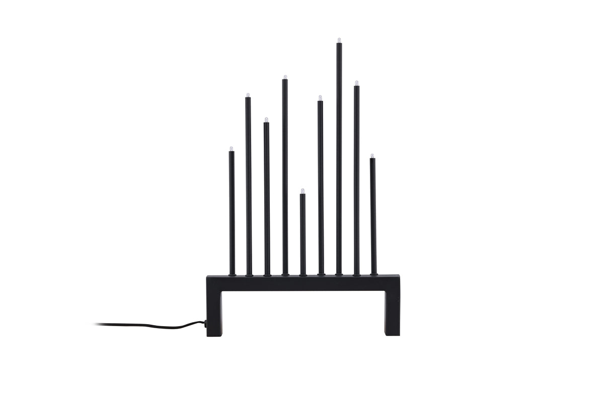 Sytytä Vallåsen-pöytävalaisin ja luo tunnelmallinen tunnelma tällä upealla modernisti muotoillulla adventtikynttilänjalalla! Vallåsen-valaisinsarja on taidokkaasti muotoiltu muistuttamaan epäsäännöllisen adventtikynttilänjalan muotoa, mutta se vie sen uudelle tasolle pienillä erikorkuisilla valaisimilla, jotka säteilevät hienovaraista ja kaunista hehkua. Tästä tulee tyylikäs ja tyylikäs yksityiskohta, joka voi koristella mitä tahansa huonetta. Valmistettu mustasta teräksestä minimalistiseen tyyliin. Mikä tekee Vallåsenista vielä upeamman, on sen monipuolinen käyttö. Sijoita se työpöydällesi luomaan rauhallinen ja keskittynyt ilmapiiri työskennellessäsi tai opiskellessasi. Tai mikset laittaisi sitä ikkunalaudalle levittämään valoa ja iloa ohikulkijoille? Ja mikä parasta - se toimii täydellisesti ympäri vuoden, eikä sitä tarvitse rajoittaa vain joulukuun juhlapyhiin! Mitat: 42x27x6cm.
